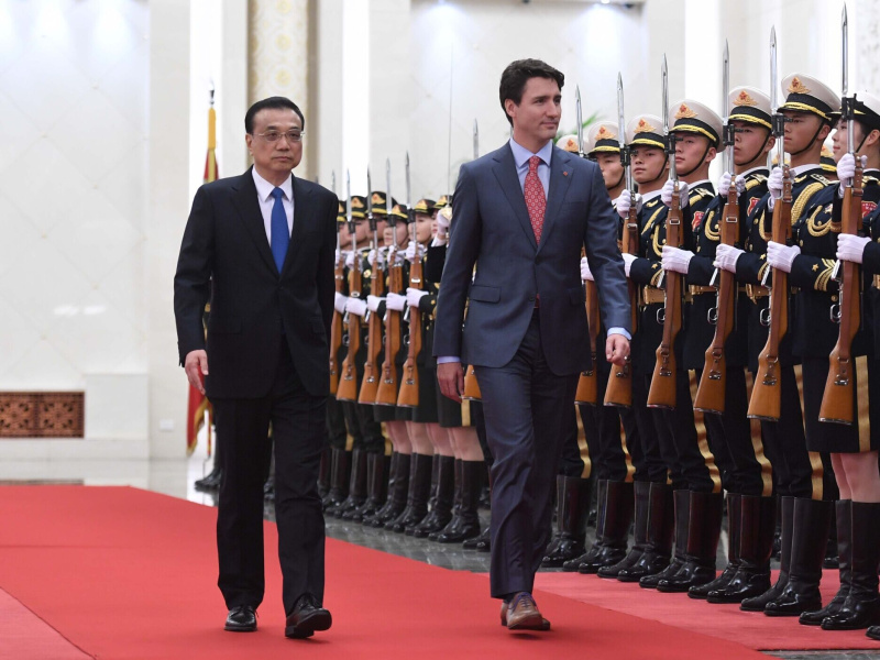 会谈前,李克强在人民大会堂北大厅为特鲁多举行欢迎仪式。全国政协副主席刘晓峰等参加。