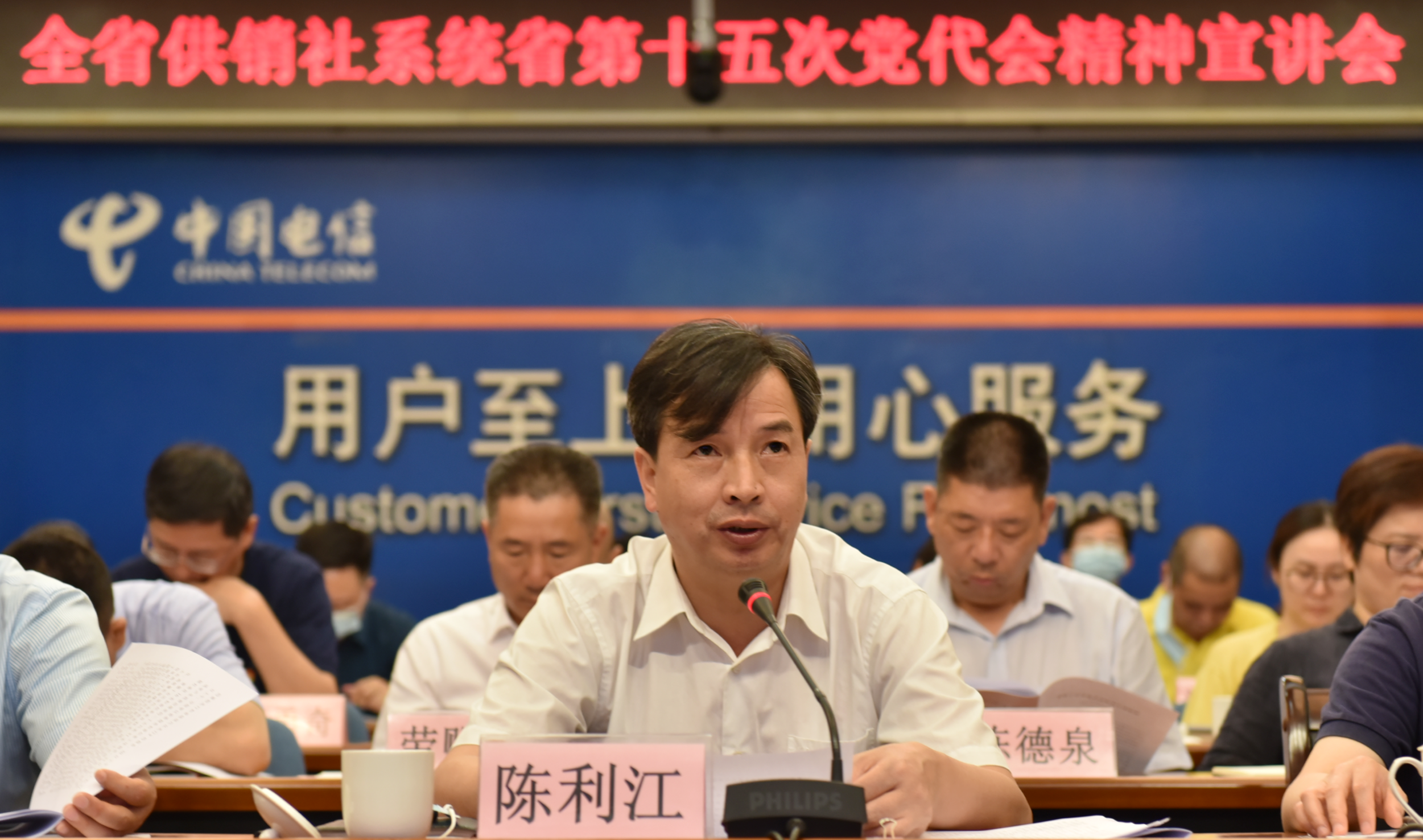 陈利江强调,要切实抓好省第十五次党代会精神的学习宣传贯彻落实工作,各级供销社和省本级社属单位党组织要切实增强政治意识和责任意识,全面动员、迅速行动,加强组织领导、精心部署安排,推动省第十五次党代会精神学习宣传贯彻走向深入,确保大会精神落地落实。学习宣传贯彻省第十五次党代会精神,要把贯彻落实习近平总书记重要指示作为首要政治任务,把深化“三位一体”改革作为重中之重,把推进社有经济高质量发展作为关键之举,把加强党的全面领导和全面从严治党作为政治保障。