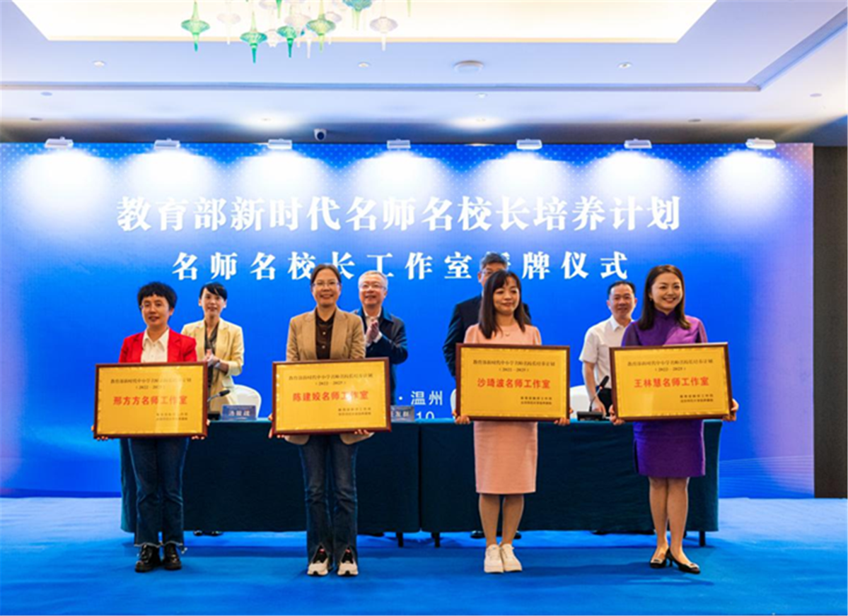 10月31日,由教育部教师工作司、浙江省教育厅主办的“教育部新时代名师名校长工作室集中授牌仪式”在温州市举行。教育部教师工作司司长任友群,浙江省教育厅副厅长汤筱疏出席活动并讲话。教育部教师工作司副司长黄小华参加授牌仪式,浙江省教育厅总督学陈仁坚主持授牌仪式。